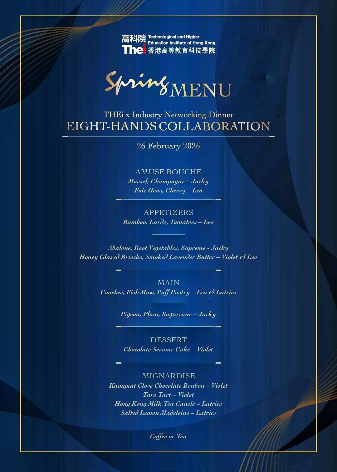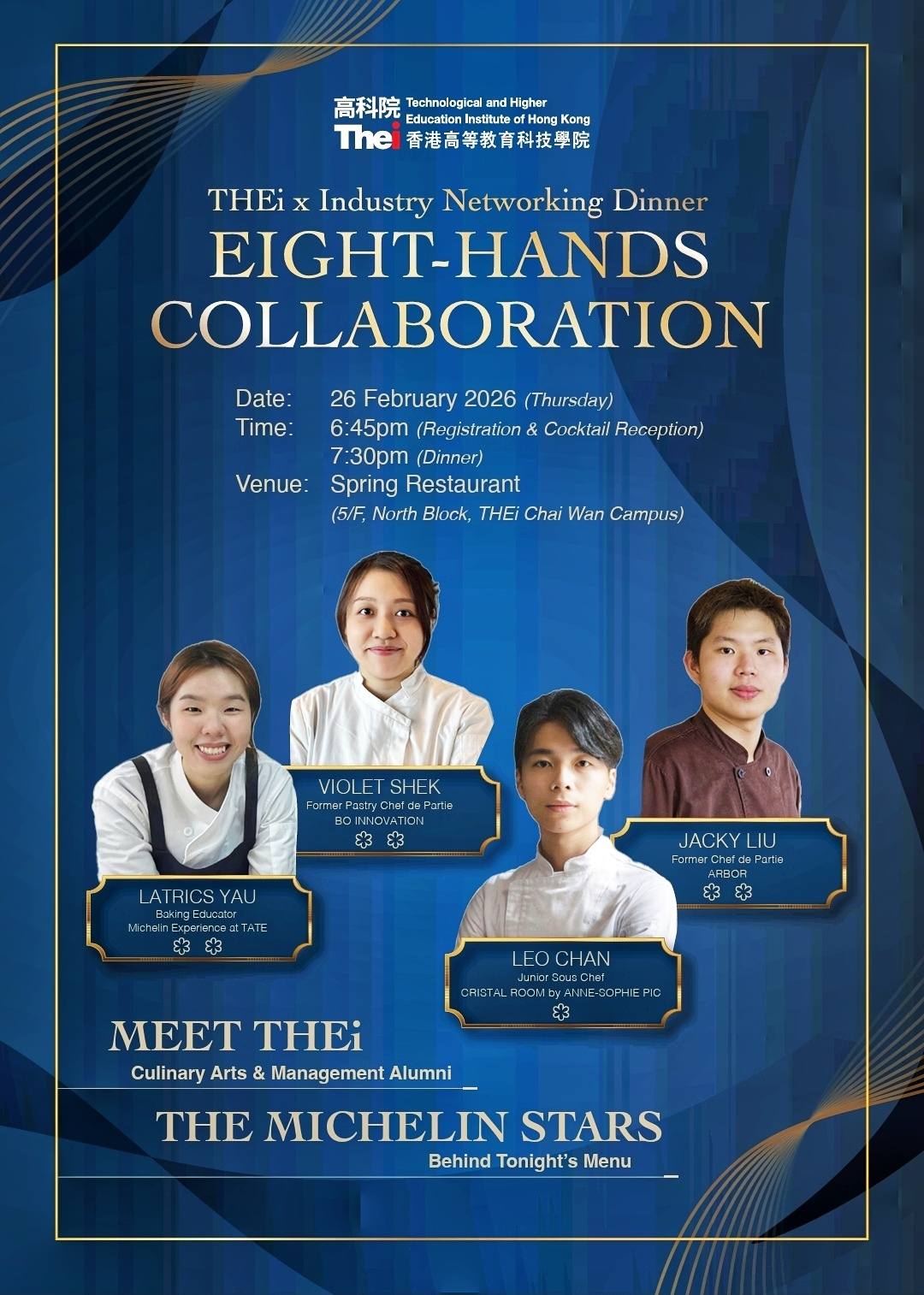 今晚很榮幸獲邀參與香港高等教育科技學院(THEi)行業交流晚宴——THEi x Industry Networking Dinner: Eight-Hands Collaboration,與來自不同領域的領袖及專家學者互動交流,探索不同產業與學術界的跨界別協作。最特別是可以親自嚐到在香港米芝蓮星級餐廳工作的THEi校友精心設計的晚宴,這個由四位傑出校友以八手用心準備的晚餐,可謂「產學研用」的豐碩成果,令人印象難忘。