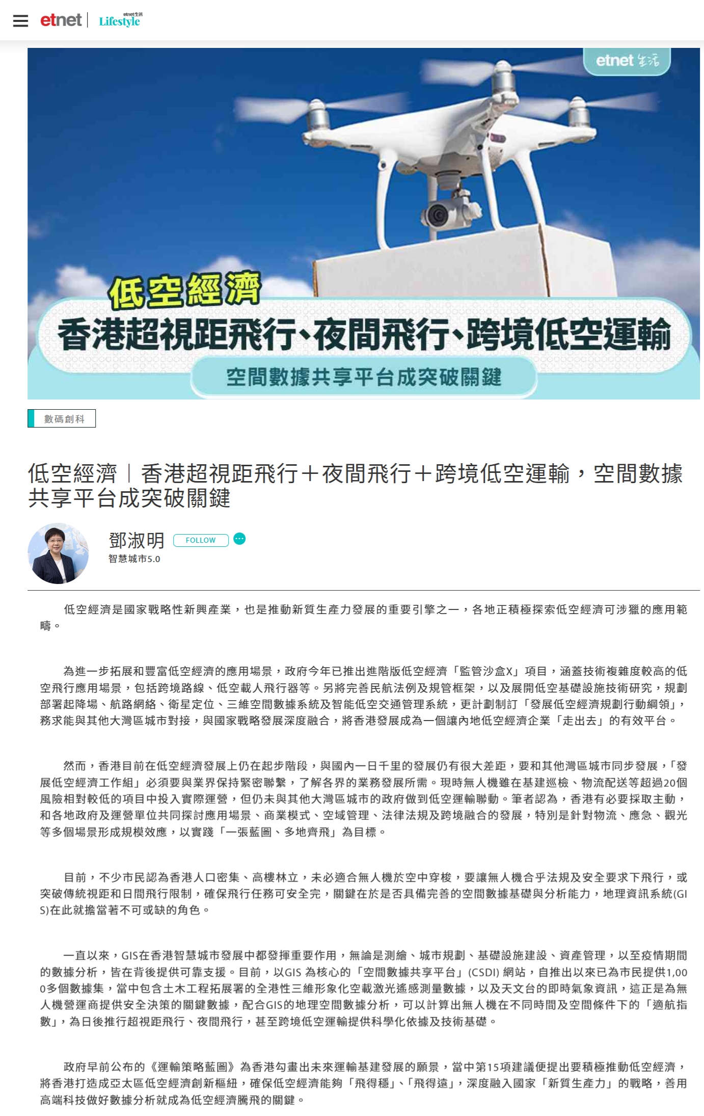 政府早前公布的《運輸策略藍圖》為香港勾畫出未來運輸基建發展的願景,當中第15項建議便提出要積極推動低空經濟,將香港打造成亞太區低空經濟創新樞紐,確保低空經濟能夠「飛得穩」、「飛得遠」,深度融入國家「新質生產力」的戰略,善用高端科技做好數據分析就成為低空經濟騰飛的關鍵。