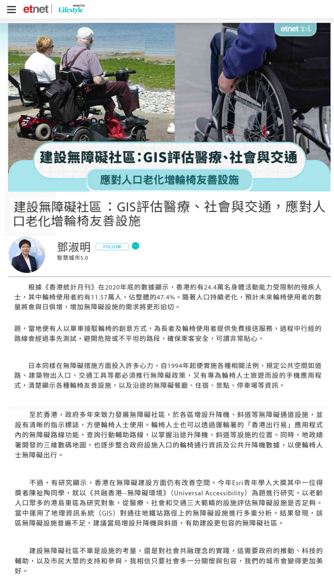 建設無障礙社區:GIS評估醫療、社會與交通,應對人口老化增輪椅友善設施 - 經濟通etnet