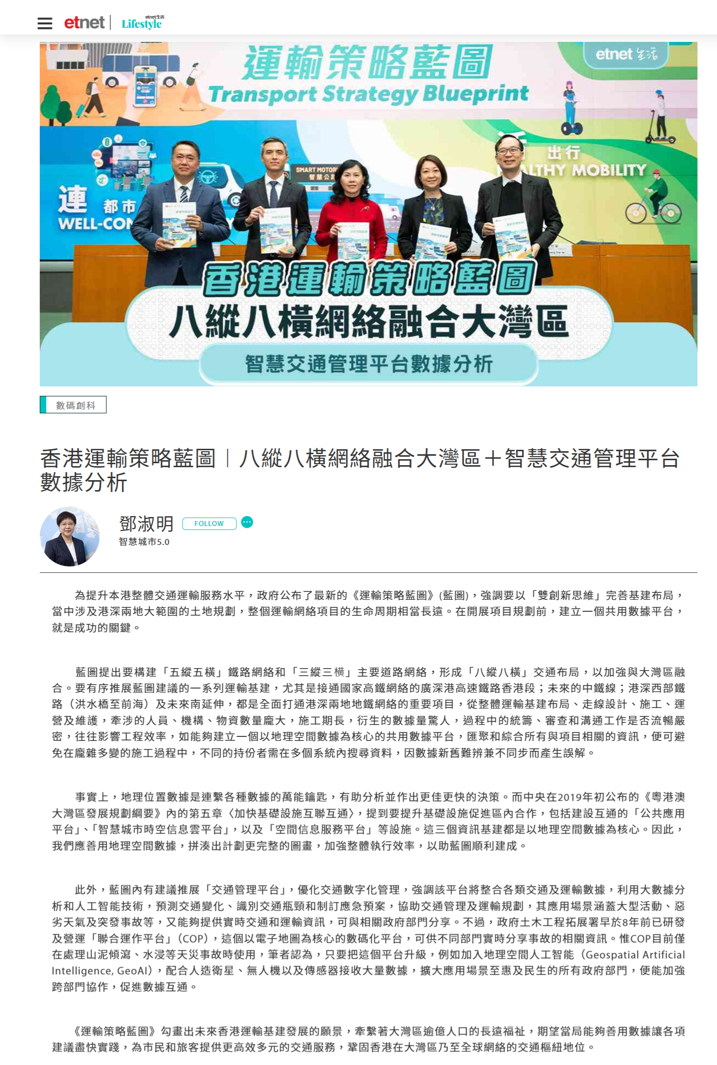 《運輸策略藍圖》勾畫出未來香港運輸基建發展的願景,牽繫著大灣區逾億人口的長遠福祉,期望當局能夠善用數據讓各項建議盡快實踐,為市民和旅客提供更高效多元的交通服務,鞏固香港在大灣區乃至全球網絡的交通樞紐地位。