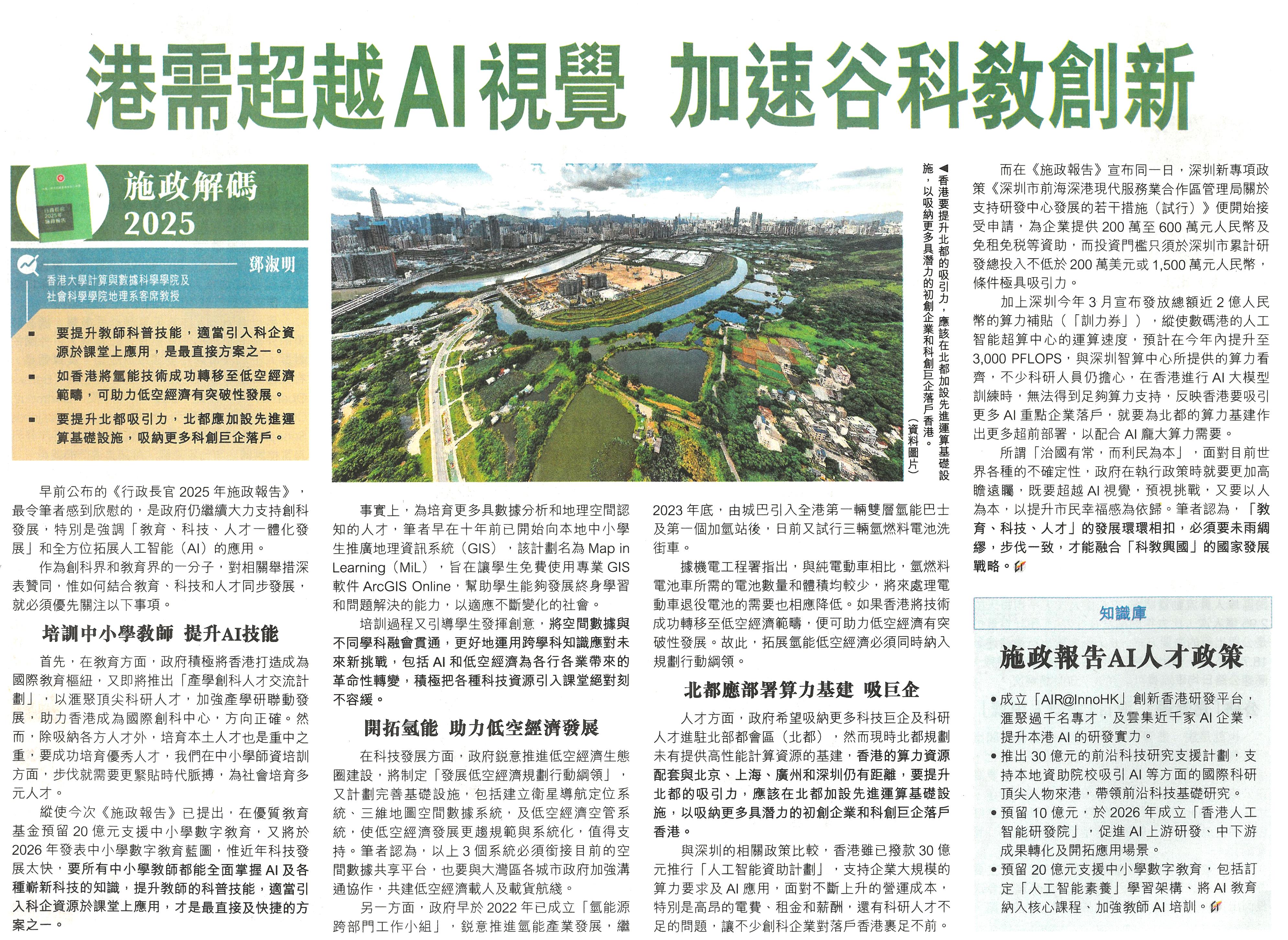 早前公布的《行政長官2025年施政報告》,最令筆者感到欣慰的,是政府仍繼續大力支持創科發展,特別是強調「教育、科技、人才一體化發展」和全方位拓展人工智能(AI)的應用。