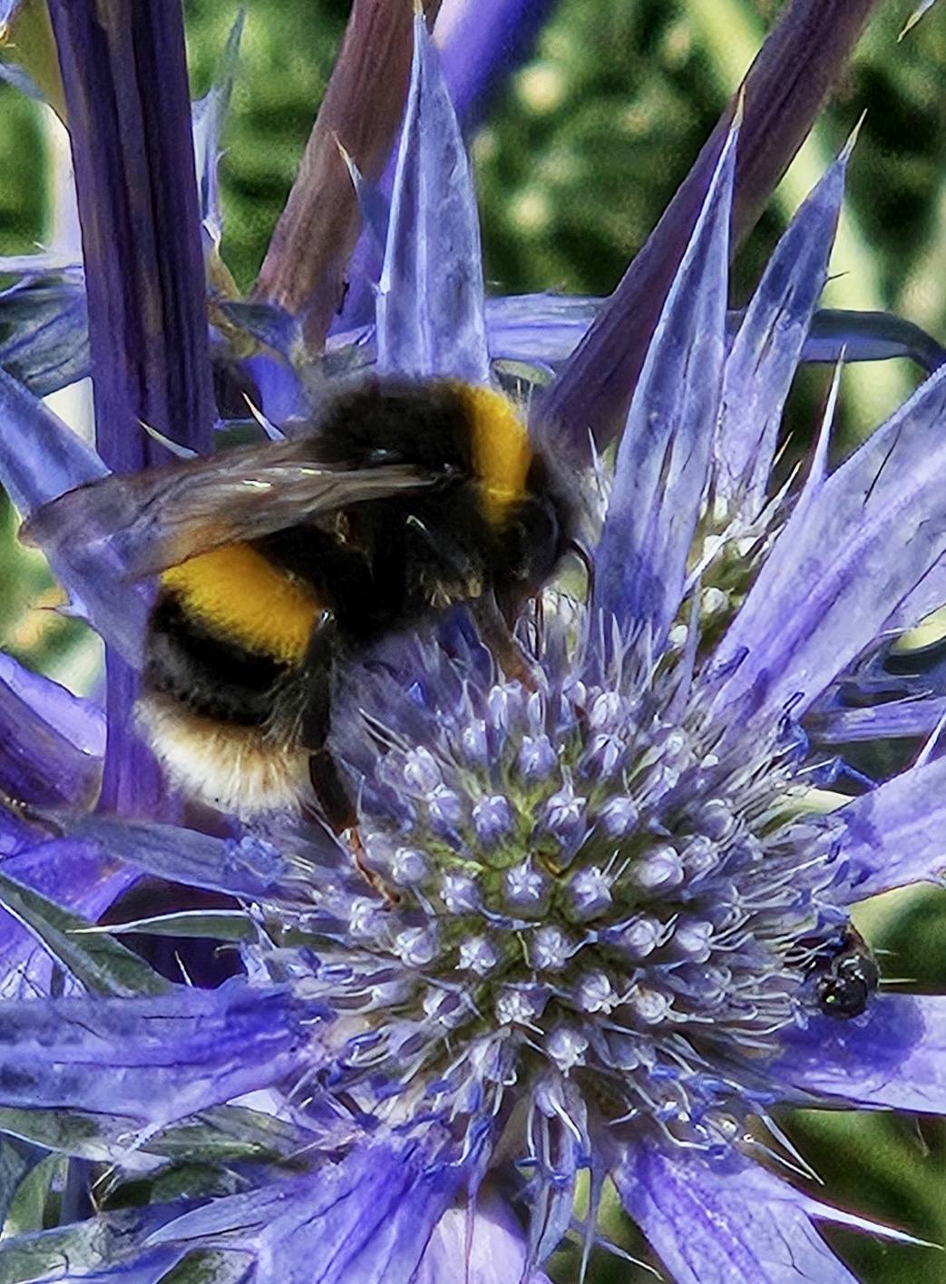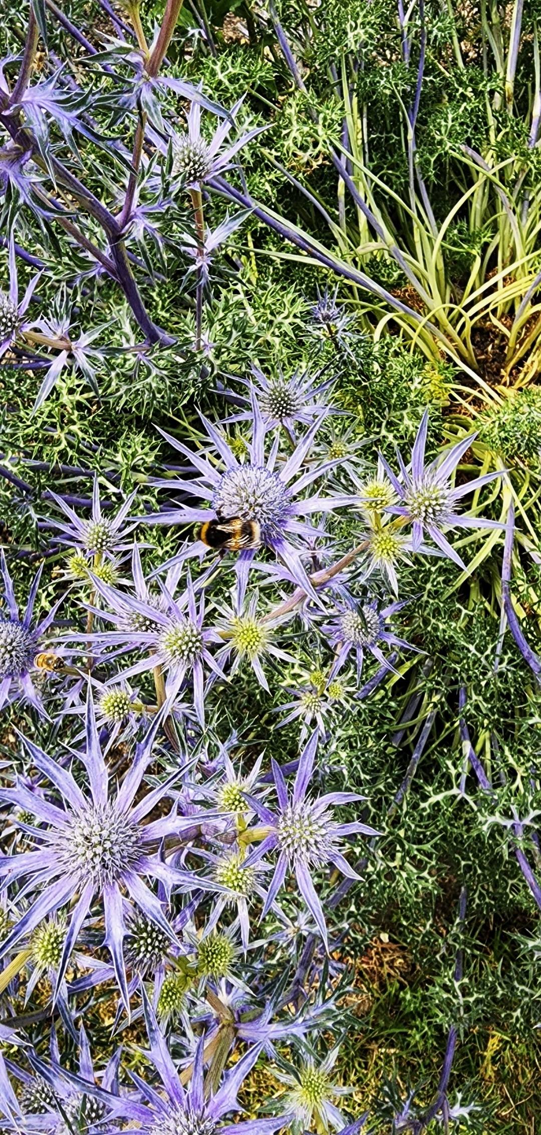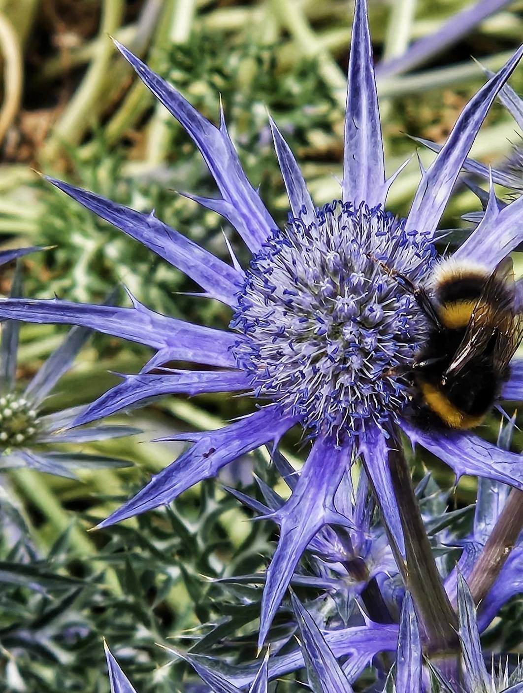 刺芹是一種很神秘的植物,外形高冷,遠望像有刺的海膽,花語卻是力量和勇敢的象徵。早前拍得這種紫水晶刺芹,剛巧有可愛的小蜜蜂正在用心採蜜,構成一幅很獨特的相片,也是大自然最美的一剎那。