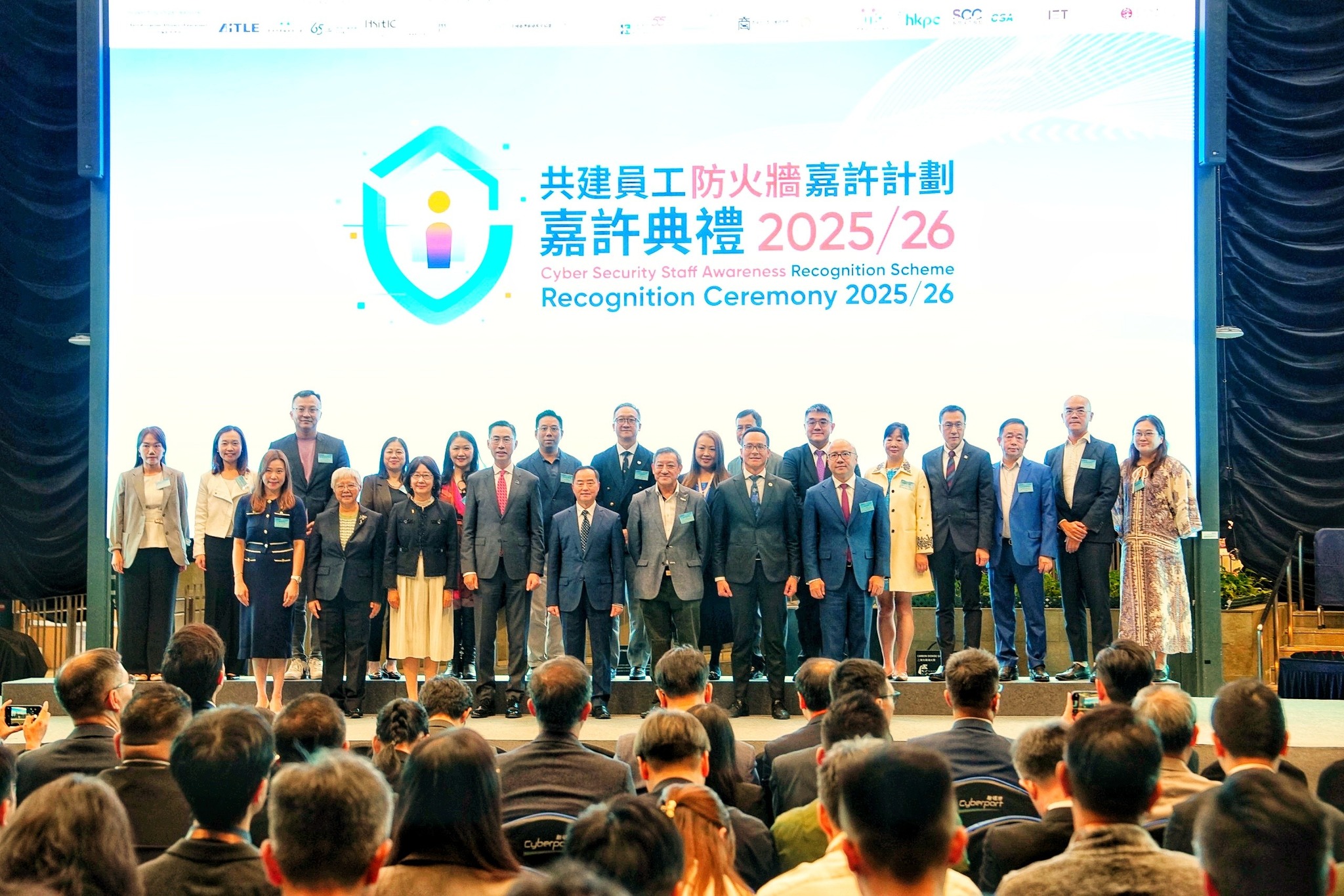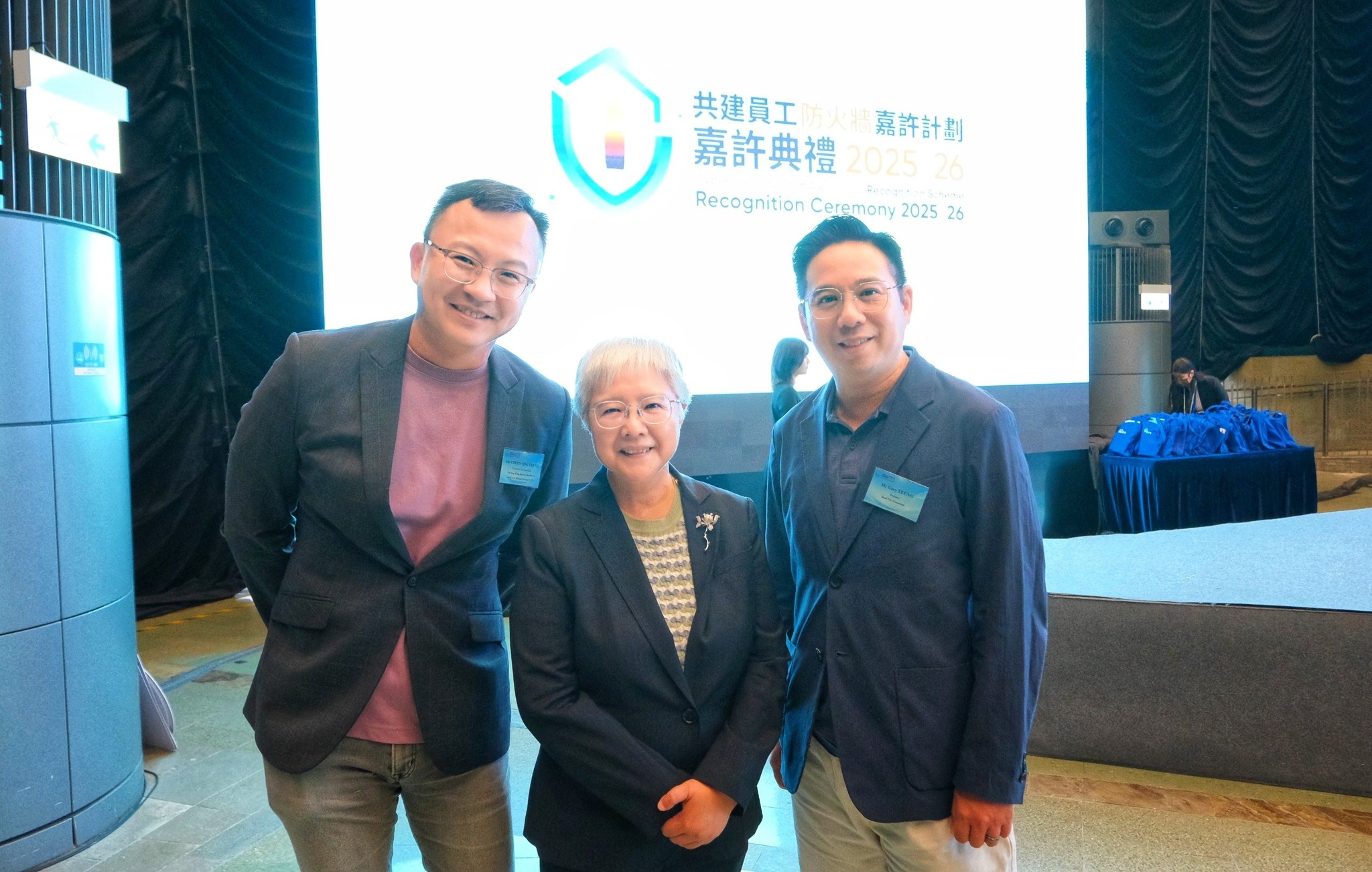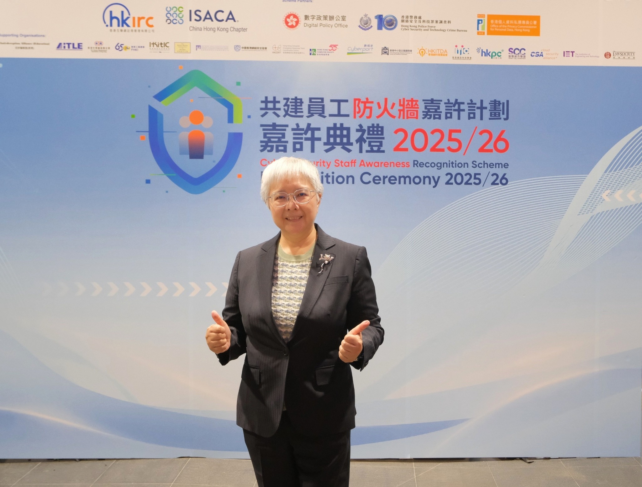 今日很榮幸代表香港互聯網註冊管理有限公司(HKIRC)出席「共建員工防火牆嘉許計劃嘉許典禮2025/26」。員工是企業網絡安全的第一道防線,他們的安全意識對防範網絡攻擊至關重要,期望更多企業能重視人才培訓,讓團隊能更有效識別及應對潛在威脅,共同建設更安全、更可信的數碼環境。活動期間,很高興遇上智慧城市聯盟的中堅份子Gary及Eric,儘管大家今天分別代表不同機構出席,但我們對推動香港智慧城市發展的承諾始終如一。
