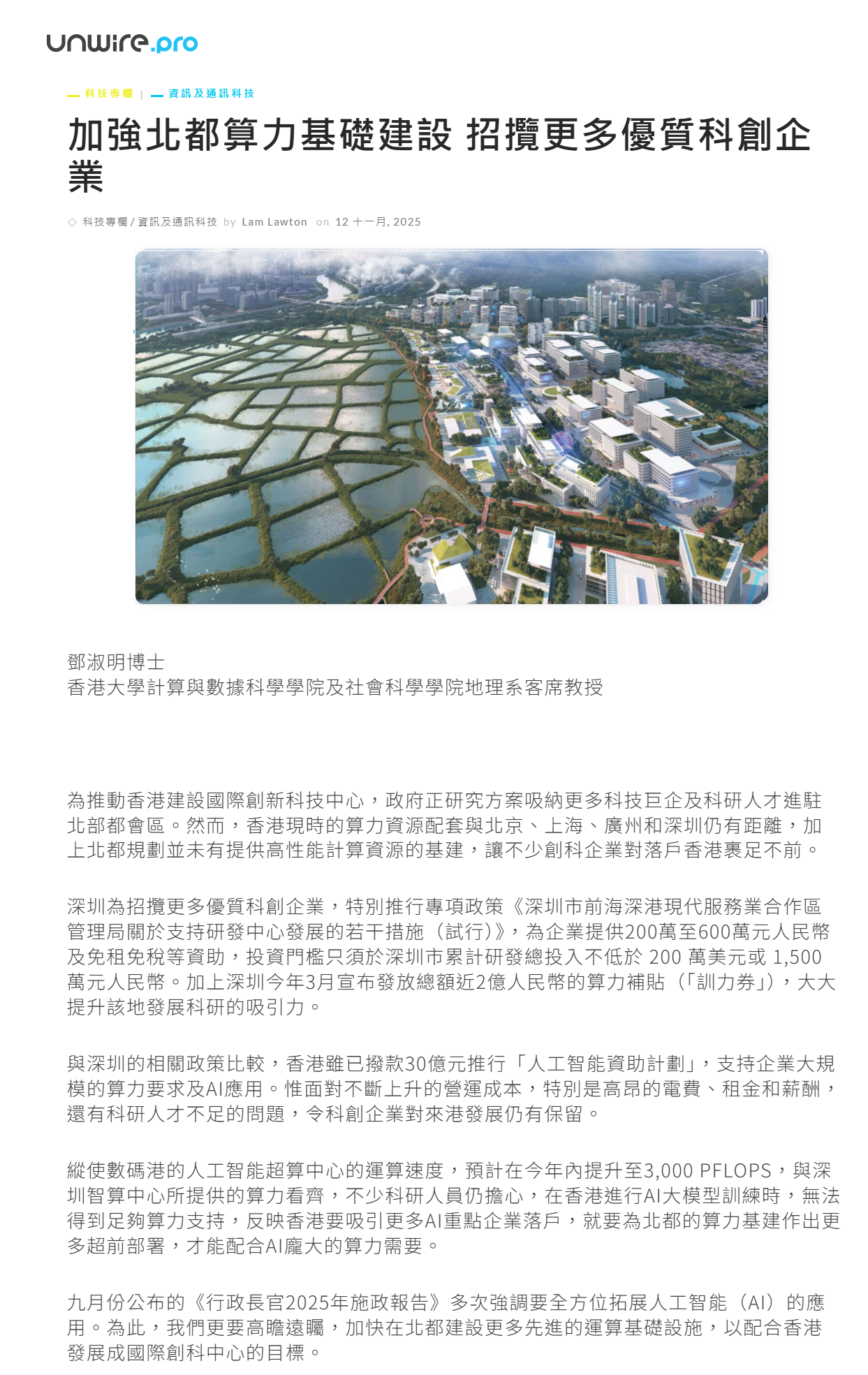 加強北都算力基礎建設 招攬更多優質科創企業 - Unwire. pro