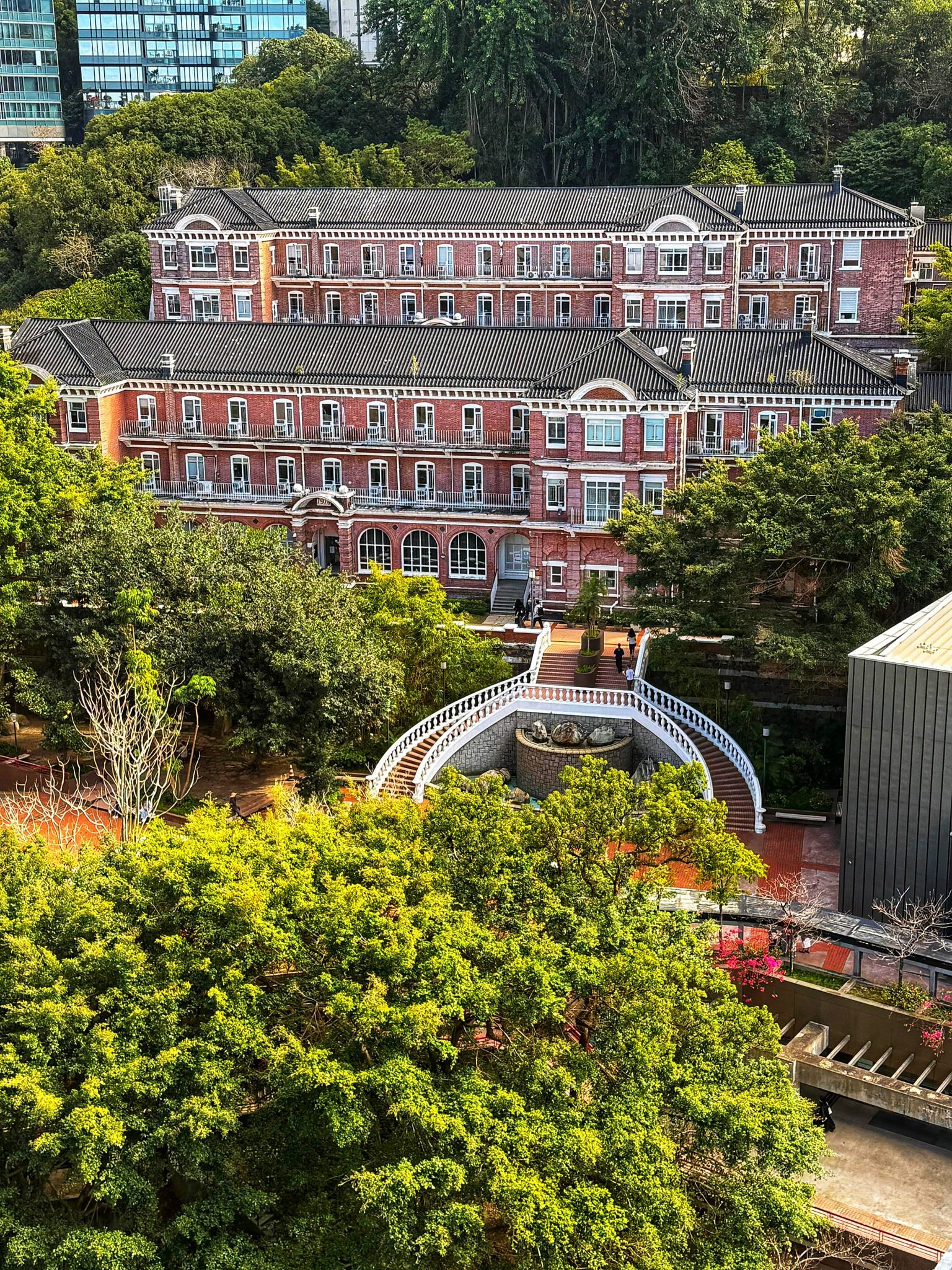 近月因為教書關係,經常遊走港大校園內外,發現校園裡的植物和建築物背後,都蘊含著許多融合中西文化的香港故事。位於大學本部校園內的儀禮堂(Eliot Hall)和梅堂(May Hall),是港大校園最古老的建築群之一,亦是本港現存最早以西式為主,兼具中式建築細節的法定古蹟。大樓主要建材為紅磚,採用荷蘭式砌法,屬英國愛德華時期的華麗建築風格,配以中式瓦頂和陶製漏窗,極具本地特色;附近花園種有大片竹林和白色山茶花,兩者都是中國古代文人經常歌頌的植物。不經不覺,香港大學今年已踏入115周年,這一草一木,一磚一瓦,都與香港同步走過百年歷史,值得我們珍惜和景仰。
