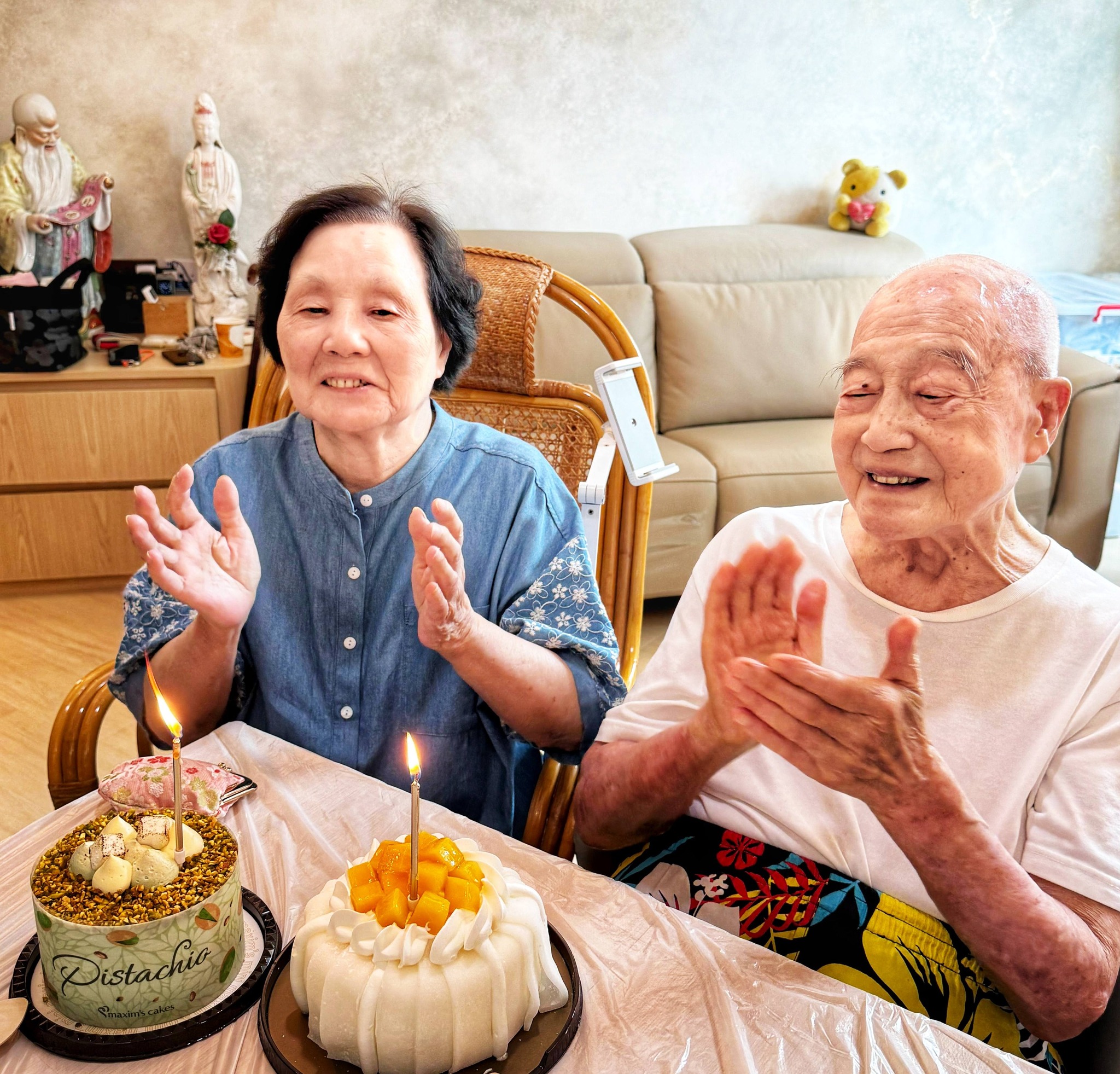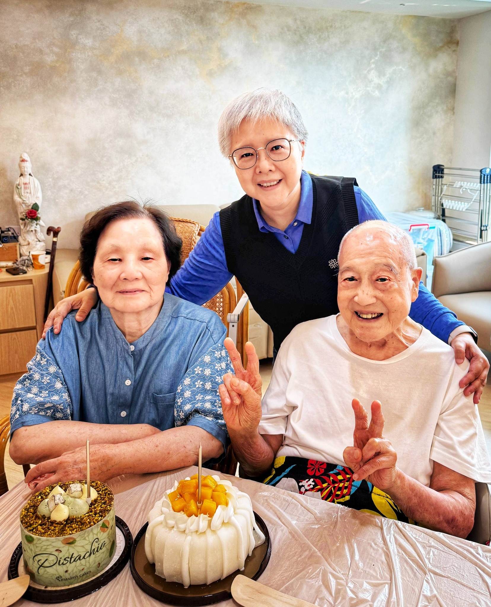 今日和兩位壽星共同慶祝生日,一家人熱熱鬧鬧唱生日歌兼許願,希望父母健健康康,時時刻刻開心生活,繼續做我的忠實粉絲,支持我努力追夢!
